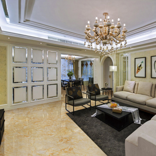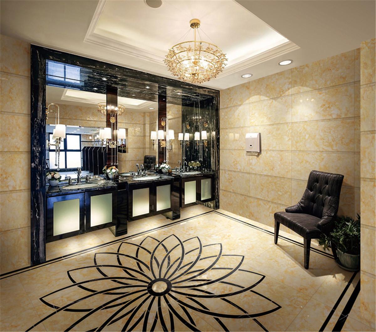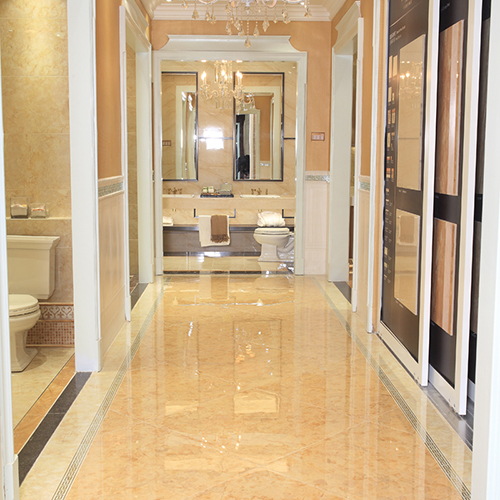 祥瑞滿屋,華貴大氣。蜜黃圓紋星羅棋布點綴于米黃色磚面,柔而不媚妍而不艷,肌理細膩觸手溫潤,鋪貼空間清爽舒暢,讓人心緒寧靜。