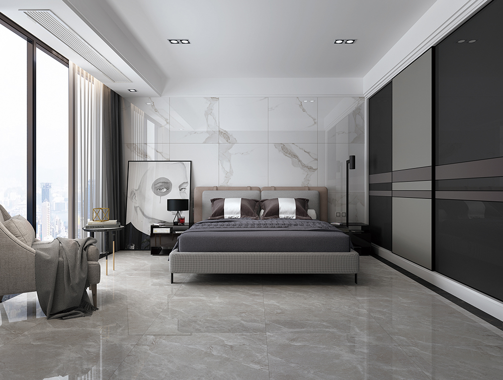 灰調基底下,顯露著乳白色的紋理,通透且清晰,色澤均勻,大面積鋪貼后打造出不一樣的高級感。